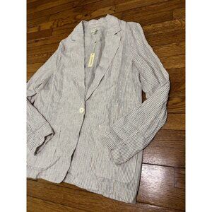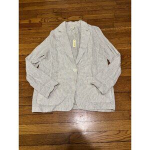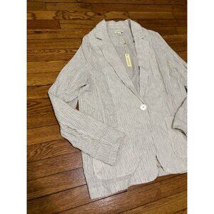 Max Studio Womens Jacket Sz Large White Striped Linen 1 Button Blazer NWT $118. New with tags! No tears, stains or defects!