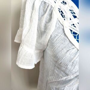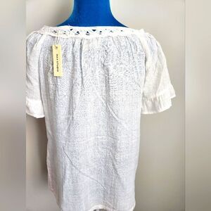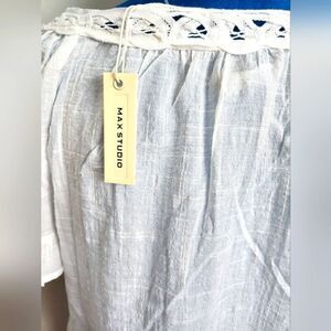 Max Studio Women's Jersey Top Flutter Short Sleeve Crinkle White Size L