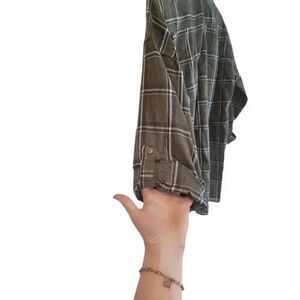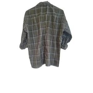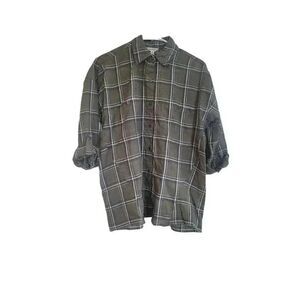 Max Studio Women's Khaki Cotton/Poly Plaid Button Down Roll Tab Sleeves Top NEW