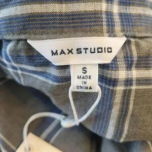 Max Studio Women's Khaki Cotton/Poly Plaid Button Down Roll Tab Sleeves Top NEW NWT sz S