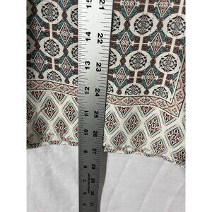 The Max Studio Women's Large Short Sleeve Button Up Blouse is a stylish and versatile piece perfect for various occasions, from casual outings to business meetings. The geometric pattern in vibrant colors adds a touch of interest, while the collared neckline and button closure give it a classic and polished look. Made of easy-care polyester, this tunic-style blouse features a relaxed fit for comfort and ease of movement. Ideal for the summer, fall, or spring seasons, this blouse is a must-have for any fashion-forward woman's wardrobe.