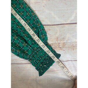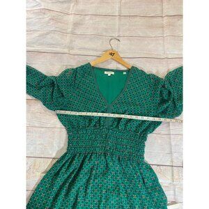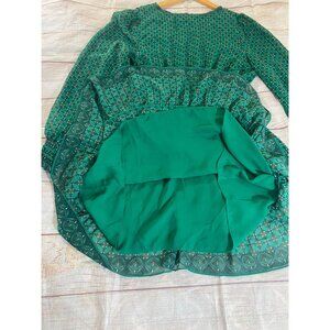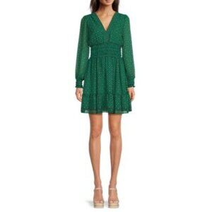Max Studio Women's Long Sleeve Chiffon Green Smoked Mini Dress - Large