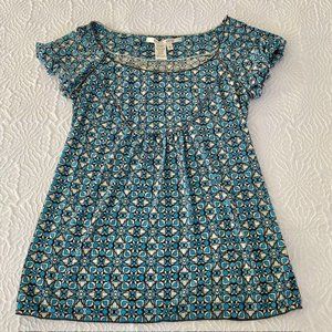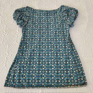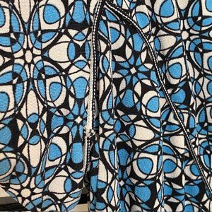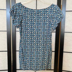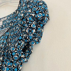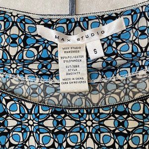 Max Studio Women's MOD Geometric Blue Black White Retro Cap Sleeve Top