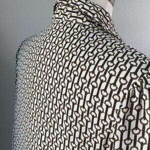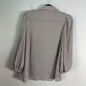 Max Studio Womens Medium Chain Link Print Blouse Button Up Long Sleeve Shirt Top