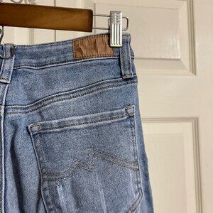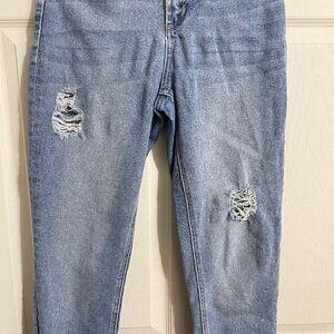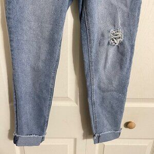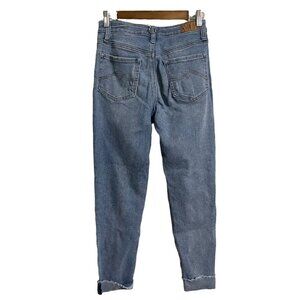 Max Studio Womens Medium Wash High Rise Distressed Cuff Cropped Tapered Jeans 6