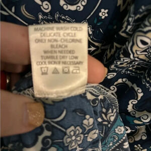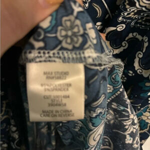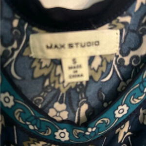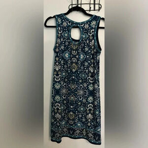 Max Studio Womens Navy Teal Print Dress Keyhole Back Polyester/Spandex Sz Small