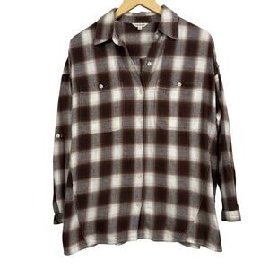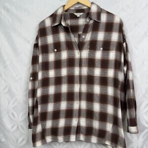 Max Studio Womens Plaid Shacket Shirt Small Brown Casual Flannel Buttons Size L