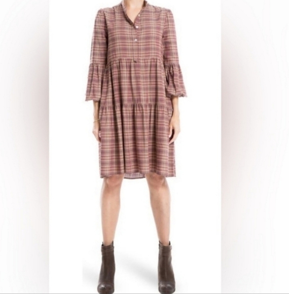 Max Studio Womens Rayon Plaid Long Sleeve Mini Dress Size Small