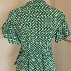 Max Studio Women's Ruffle Crepe High/Low Wrap Midi Dress, Grn/Blue,NWOT, XS