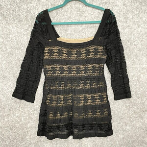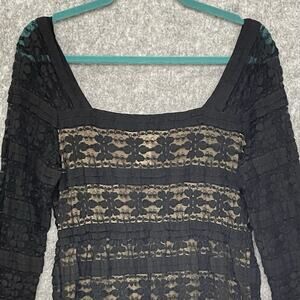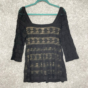 Max Studio Womens Sheer Lacy Whimsigoth Tunic Top Size L Moto Stretchy Feminine