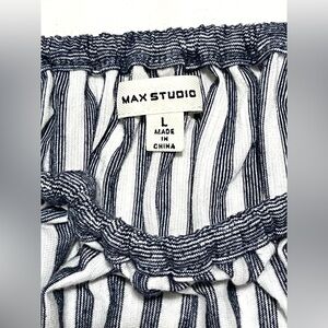 Max Studio Women’s Short Sleeve Striped Blue and White Blouse Shirt Size Large