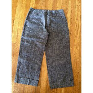 Max Studio Womens Size 10 Black Linen Capri Pants Wide Leg Cuffed
