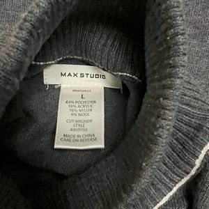 This Max Studio sweater dress is a must-have for any stylish woman's wardrobe. The dark gray color and solid pattern make it versatile for various occasions, including travel, holy communion, casual outings, or business meetings. The dress features a mock neck and long sleeves, perfect for the fall, winter, and spring seasons. It comes in size L, which is suitable for regular size types. The dress is made of a knit fabric type, which is comfortable and durable. The dress length is short, making it an ideal option for a sweater dress. The Max Studio brand guarantees quality and style, making it a unique addition to any clothing collection.