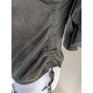 Max Studio Women's Size Large Olive Green Gauze Textured Faux Wrap Blouse Top