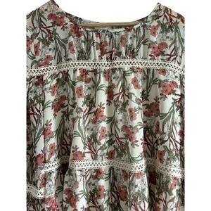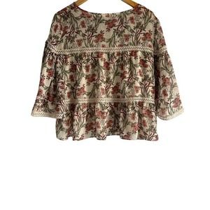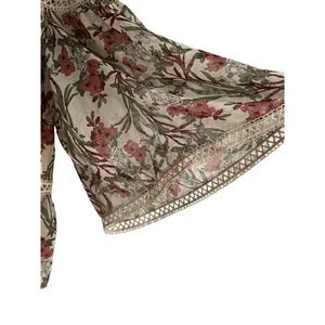 Max Studio Womens Size Medium Tired Crotchet Floral Blouse Bell Sleeves