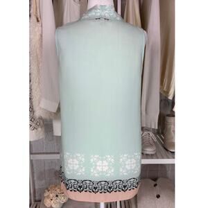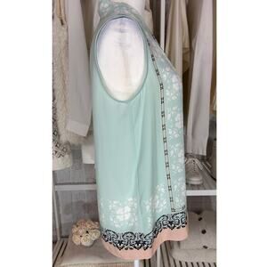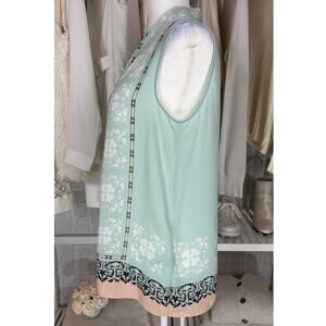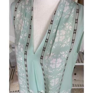 Max Studio Women's Size S Mint Green Inverted Pleat Front Floral Blouse #0471