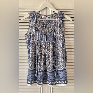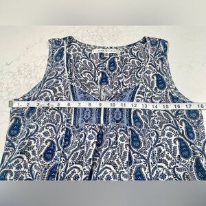 Max Studio Women’s Sleeveless Blue Paisley Design Bohemian w/Tassels Shirt SZ m
