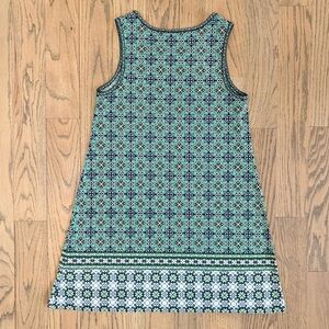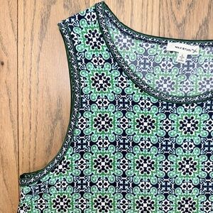 Max Studio Women’s Sleeveless Green and Blue Geometric Patterned Trapeze Dress L