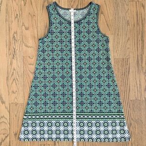 Good condition. This stylish sleeveless dress features a vibrant pattern, perfect for any occasion. From dress up to dress down, or the perfect beach cover up.