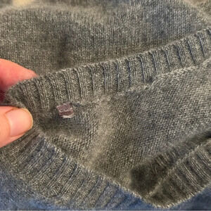 Heather gray 2 ply cashmere sweater with decorative seaming and sight high low hem with slit detail. Made of 100% cashmere, hand wash only.