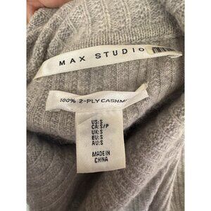 Indulge in luxury with this Max Studio sweater, a perfect piece for the Cozy, Minimalist, or Classic aesthetic. This light gray pullover features a soft, oversized cowl turtleneck and a comfortable pouch pocket at the front. It is made from plush 100% 2 Play Cashmere, ensuring premium warmth and quality. It is a Women's size Small and is in Excellent pre-owned condition - several areas of stains - needs to go to dry cleaner - see photos for details & measurements. Made in China. The flat-lay measurements are: a pit to pit of 23.5 inches and a length ranging from 26.5 to 28 inches. #Max Studio #Cashmere #Cozy #Minimalist #CowlNeck