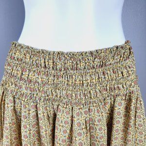 Max Studio Womens Smocked Waist Skirt Size Large Yellow Floral Print Knee Length