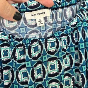 Hey there! We've got a beautiful Max Studio Women's Stretchy Blue & Black Geometric Print Sundress in Size XL up for grabs. It's in great condition, so no worries about any flaws. This dress will definitely elevate your resort wear collection, especially if you've got a lovely tan going on. Originally sold for $88, but you can feel free to make an offer. And hey, just a friendly reminder, we've got a special 15% discount when you purchase three or more items. So if you're in the mood to give your wardrobe a fresh new look, don't miss out on this opportunity! Happy shopping!