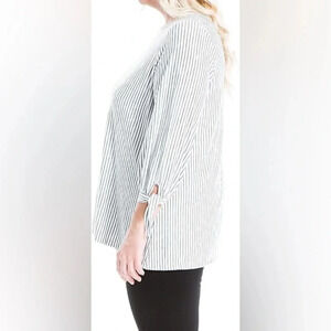 Max Studio Women's Tie Sleeve Blouse in Ivory/Indigo Dainty Stripe Plus Size 2XL