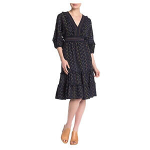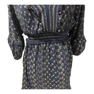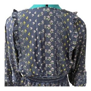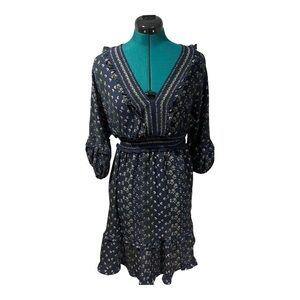 Max Studio Womens V-Neck Empire Waist Dress medium Navy Floral