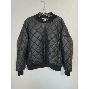Max Studio Womens Vegan Leather Jacket Black Quilted Bomber Classic Sz L
