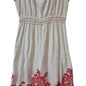 Max Studio Women's White Cotton Knit w Red Embroidery Sleeveless Lined Dress EUC sz M