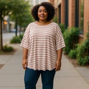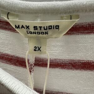 Elevate your style with this Max Studio women's sweater. Featuring a chic white and red stripe pattern and a comfortable drop shoulder design, this top is brand new and ready to wear. The 2X size ensures a flattering fit. Perfect for adding a touch of effortless elegance to any outfit.