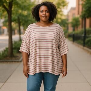 Max Studio Womens Sweater Sz 2X White Red Stripe Drop Shoulder Top NEW