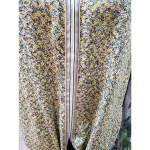 Max Studio Women's Yellow Floral 100% Polyester V-Neck Short Sleeve Top Blouse L