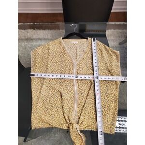 Max Studio Women's Yellow Floral 100% Polyester V-Neck Short Sleeve Top Blouse L.