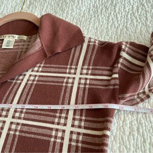 Max Studio women’s brown plaid collared sweater.