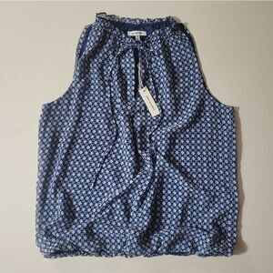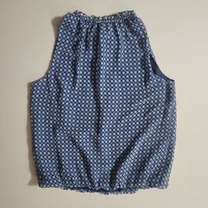 Navy all-over print blouse by Max Studio for Macy's is great with white or dark denim. This sleeveless halter style blouse has an elastic bubble hem that ensures a comfortable fit! Stock photos are of similar print. NWT