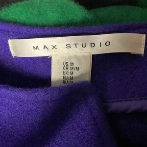 Max Studio Wool Blend Colorblock Coat in Purple, Green, and Black