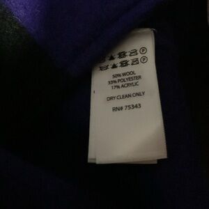 Stylish colorblock coat featuring bold purple, green, and black panels. Perfect for a chic and modern look. Wool blend. No flaws. Size M. Armpit to Armpit 21 inches. Shoulder to Hem 33 inches. No flaws. Any color variation in photos are bad lighting. Color is perfect.