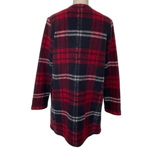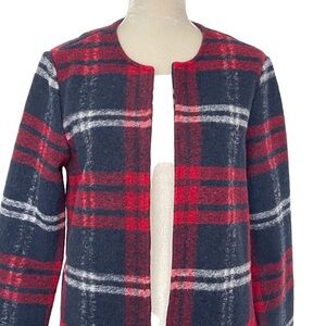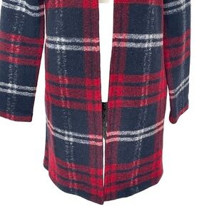 Max Studio Wool Blend Plaid Open Front Coat Women’s Size S Red Navy Pockets