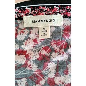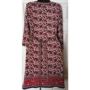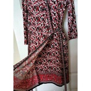 Max Studio Wrap Dress Size Small Black Red Floral Print 3/4 Sleeve Stretch