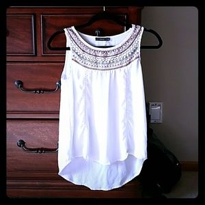 Max studio extra small printed maxi skirt that was purchased at Nordstrom. This skirt was worn once for a family photo shoot. It has a nice flowy feel to it and a comfortable elastic band. The colors of the skirt are an orangy rust background with ivory dots and burgundy diamonds.