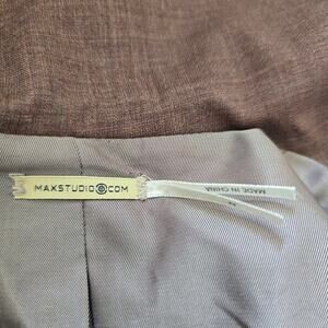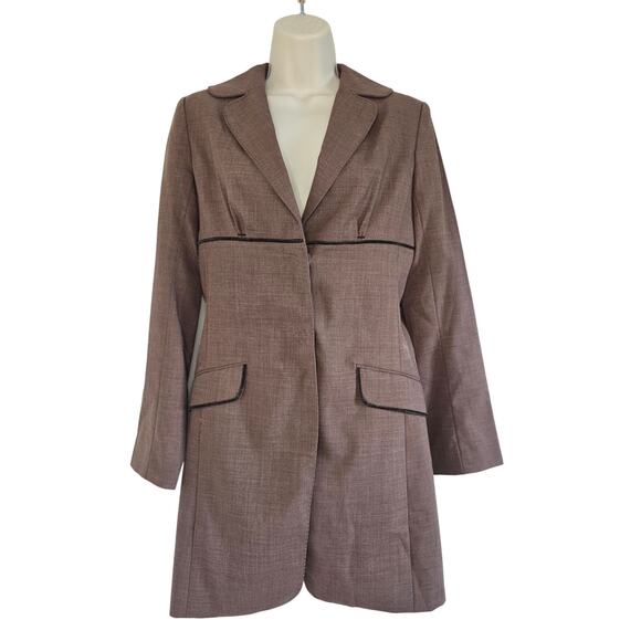 Max Studio Y2K Babydoll Long Blazer Jacket Brown Size M Velvet Trim Wool Retro