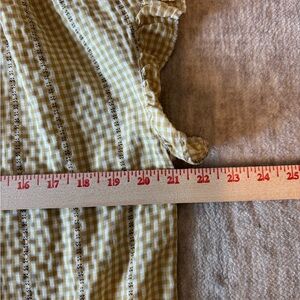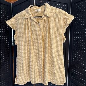 Chic yellow checkered shirt with button-down front. Features short sleeves and a classic collar. Ideal for casual wear.
