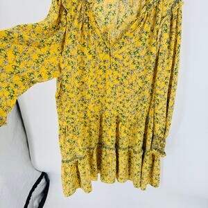 Max Studio Yellow Floral Romantic Boho Flowy Long Sleeve Fall Dress XL