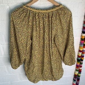 Max Studio Yellow V neck Floral Flowy Blouse sz S
