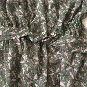 Max Studio v-neck blouse with a lovely bird pattern. Empire waist. Sash tie. Princess sleeves. Pretty details throughout. Great condition.