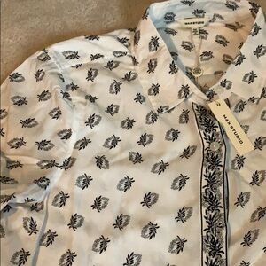 Black and white beautiful airy max studio blouse. Buttons at sleeves, button front. Great with a pair of black leggings for a classic look. There is one minor blemish on the front. Shown in pics. May come out as never worn shirt.