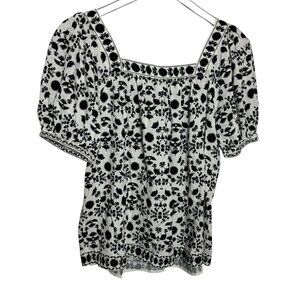 Max Studio black & white Square Neckline Relaxed Fit Size Small Tunic Top boho