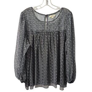 Max Studio blouse Sz 2X Long Sleeve Blouse Black & White Geometric Pattern top